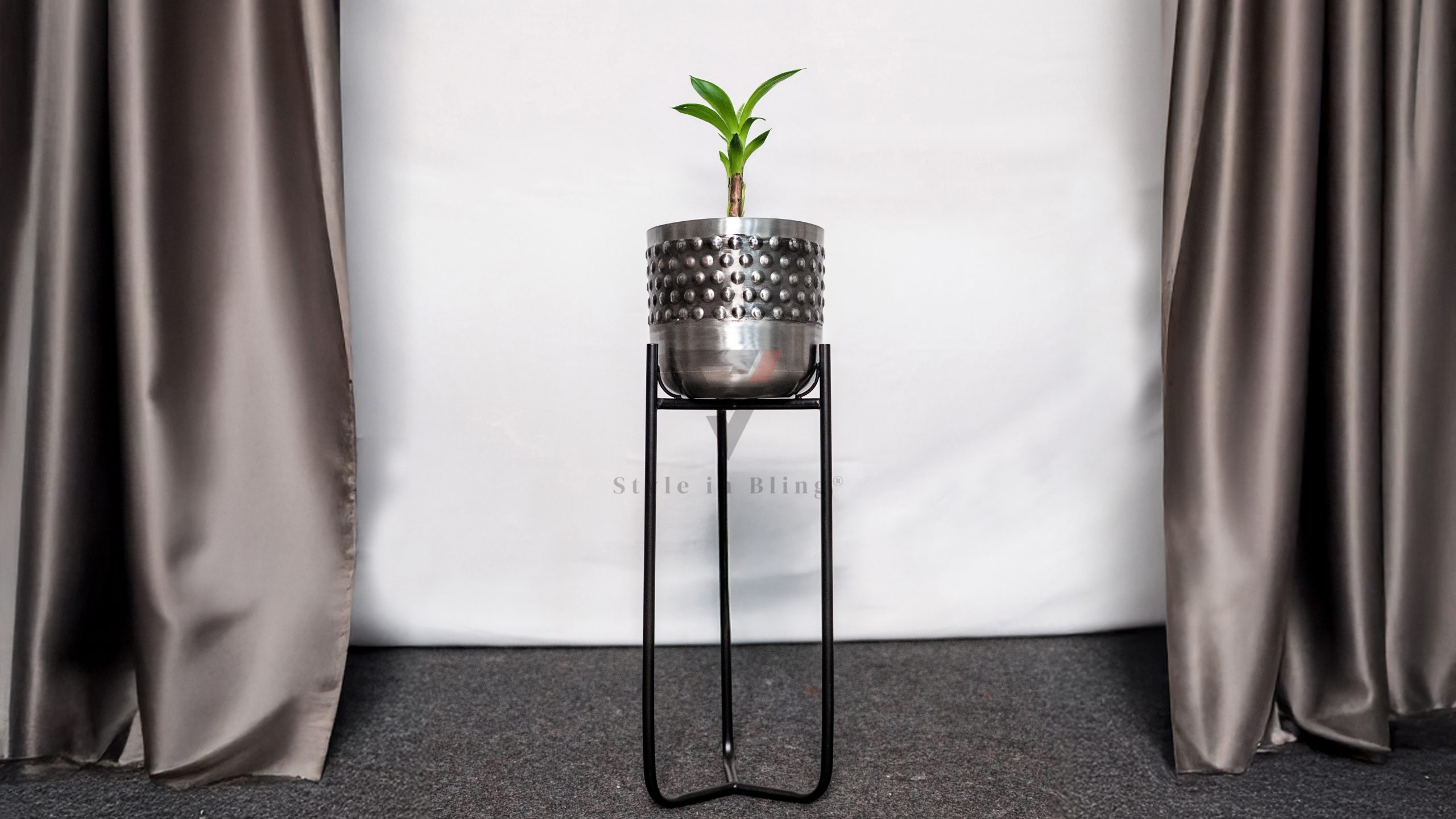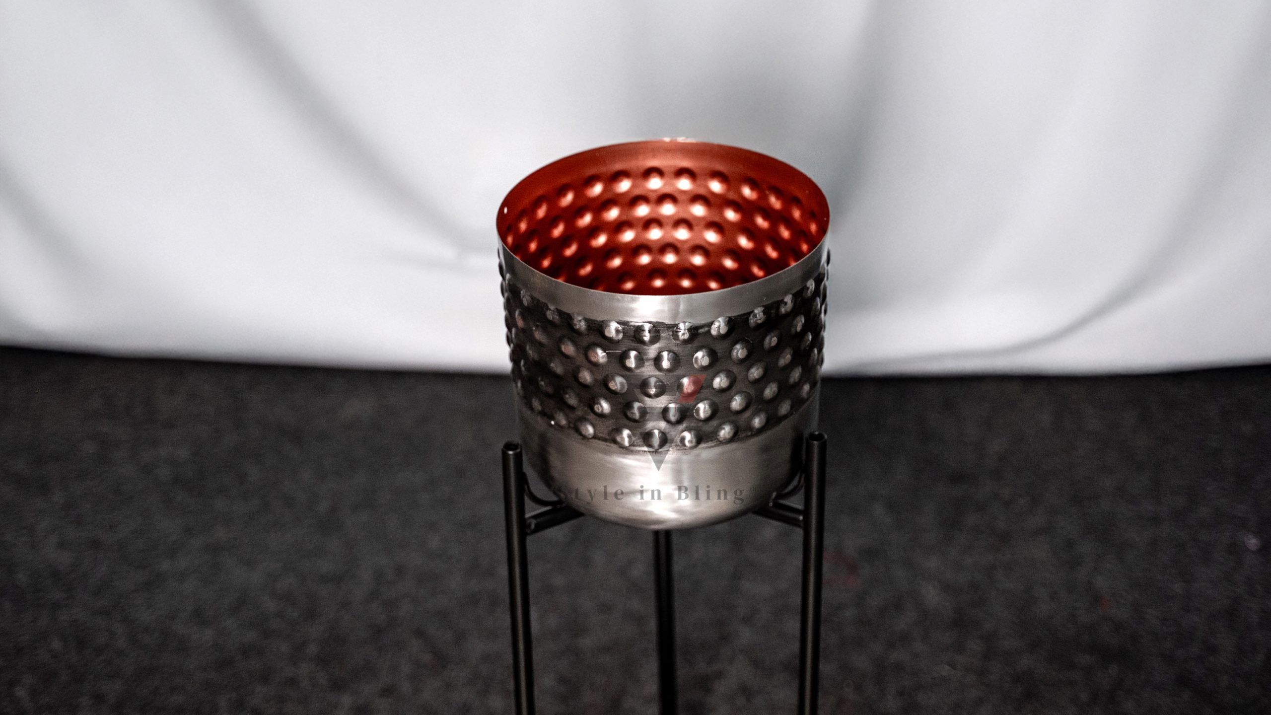 Hammered Metal Planter with Stand
